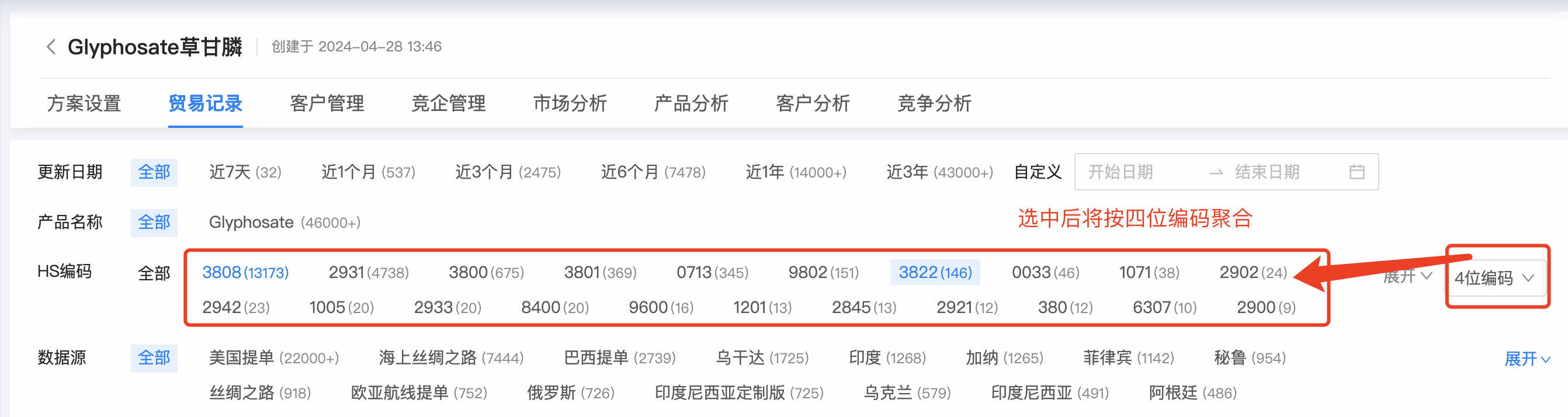 1. Topay 钱包(中国)数据通贸易记录的编码筛选,支持按 4 位、 6 位编码位数统计,同时可支持多选。